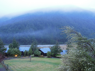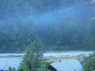 濡れた体の上に羽織って、ビショビショのままレセプションに