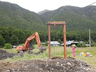 今回、建てた鉄柱のペイント作業。